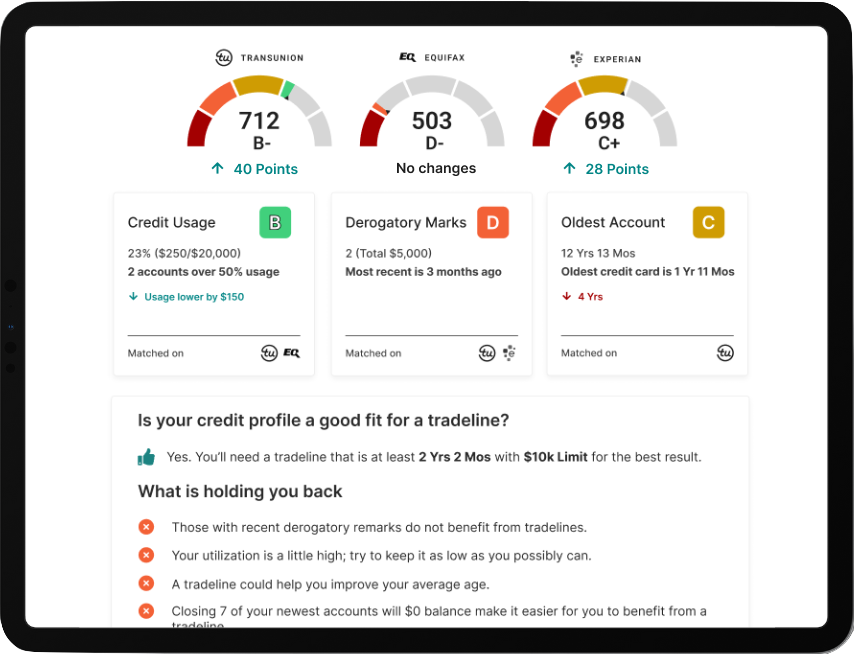 That’s why we developed the Credit Tradeline Analyzer to guide you on the most effective path to boost your score, whether you end up purchasing a tradeline or not.